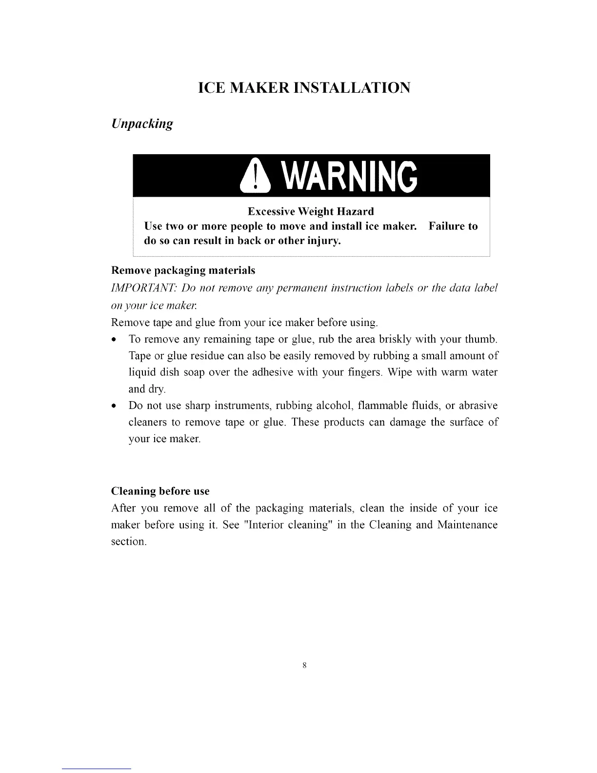 maker before using it. See "Interior cleaning" in the Cleaning and Maintenance