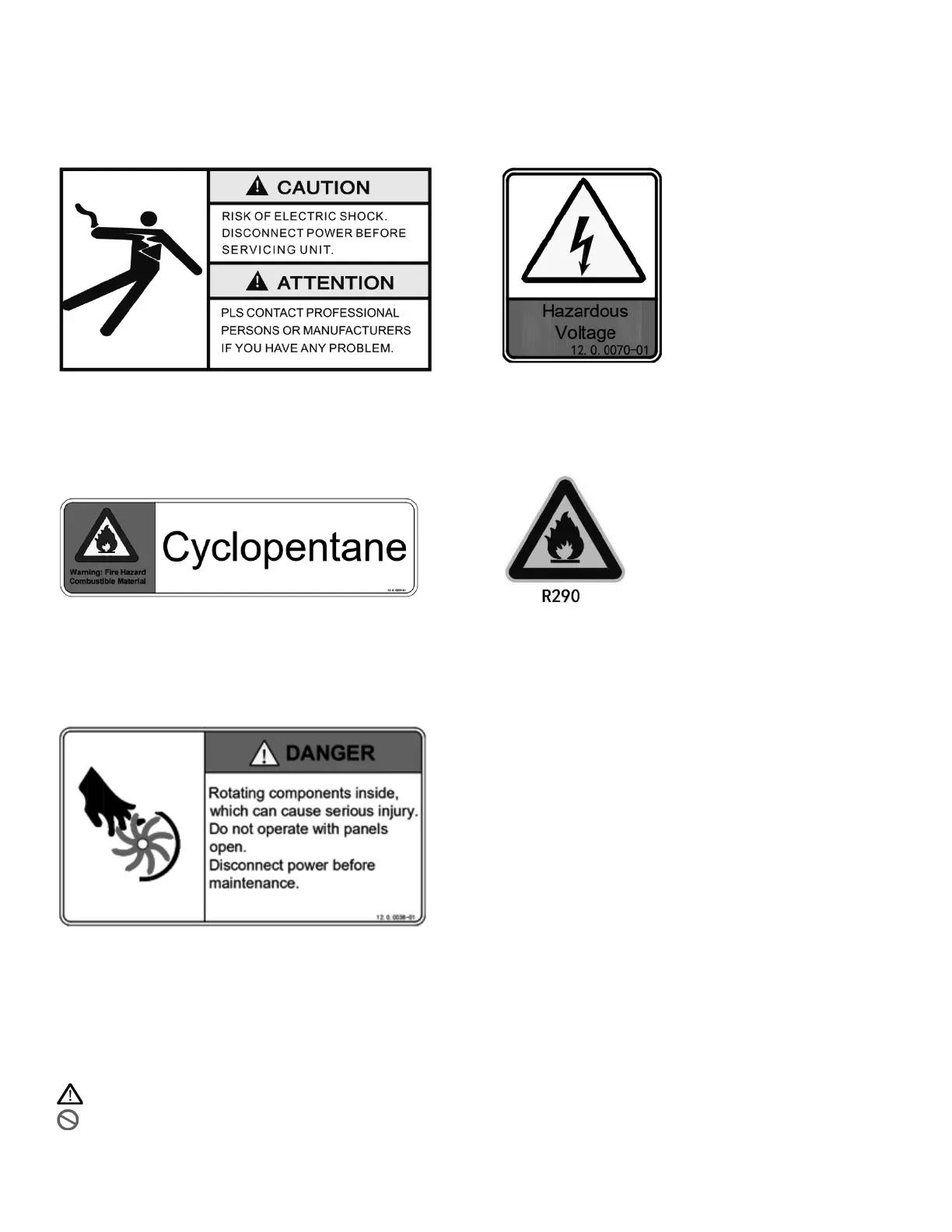 Please pay attention to the following warning labels on the ice maker: