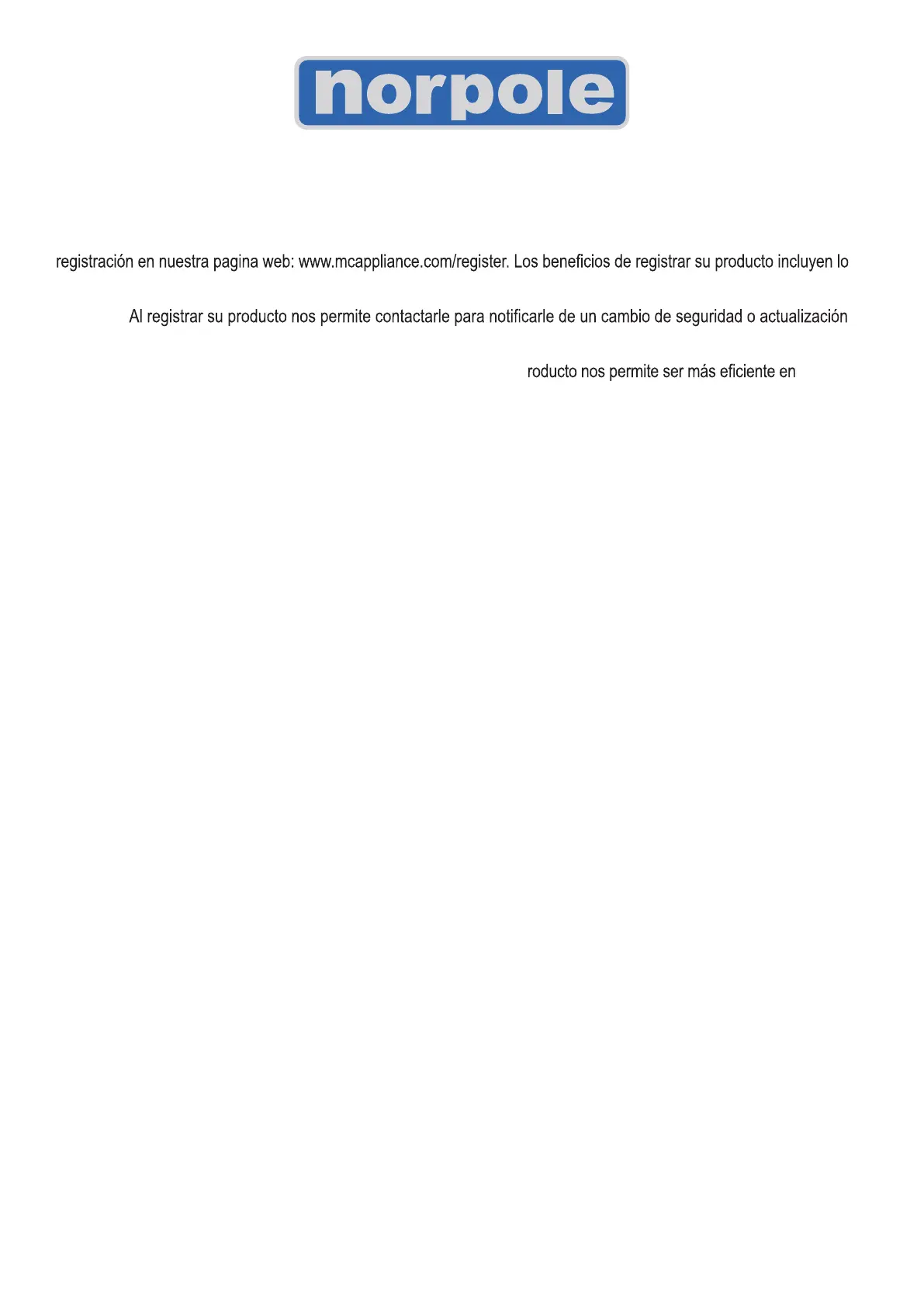 Gracias por comprar el producto Norpole® . El primer paso para proteger su nuevo producto es completar la forma de