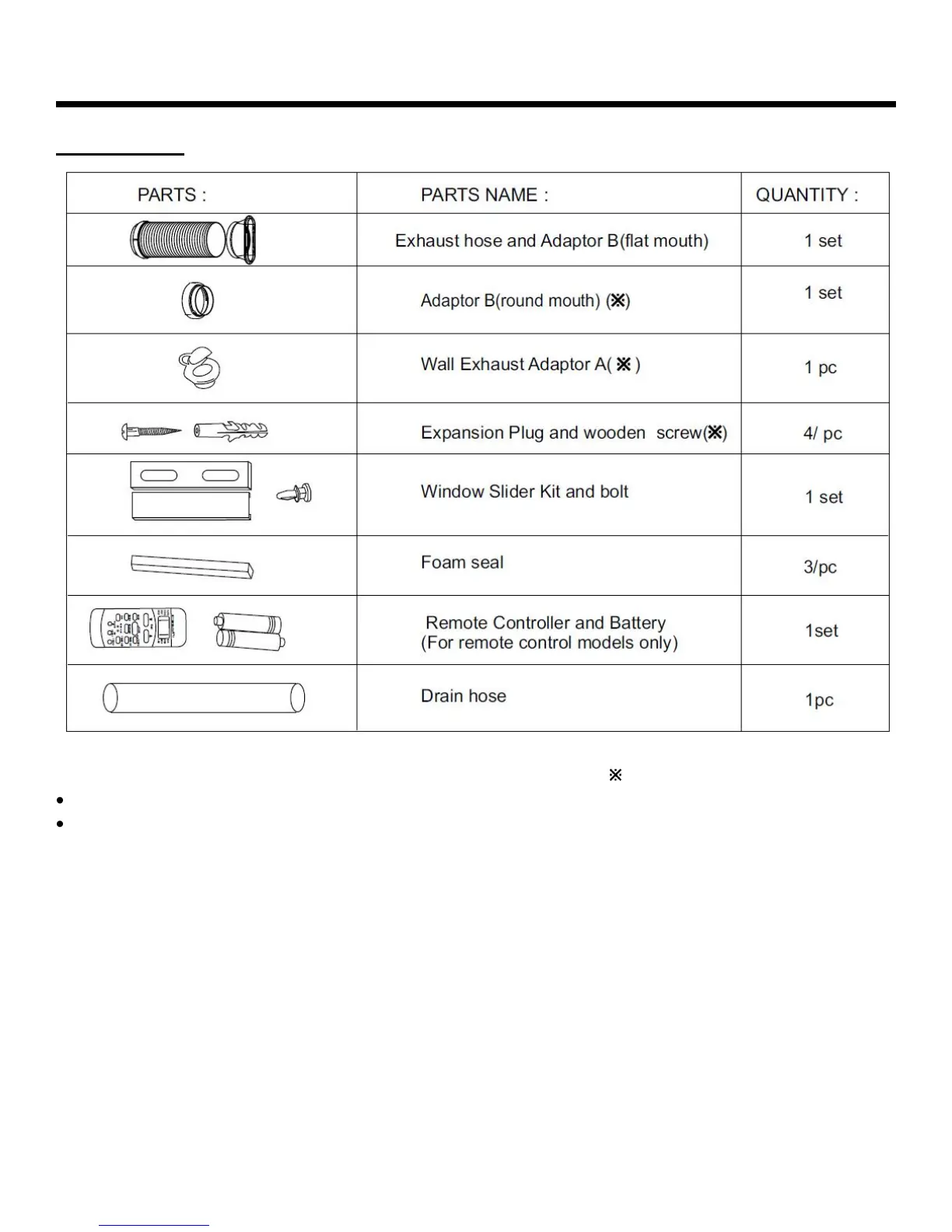 NOTE: Some models may not include optional parts marked with a ( ).