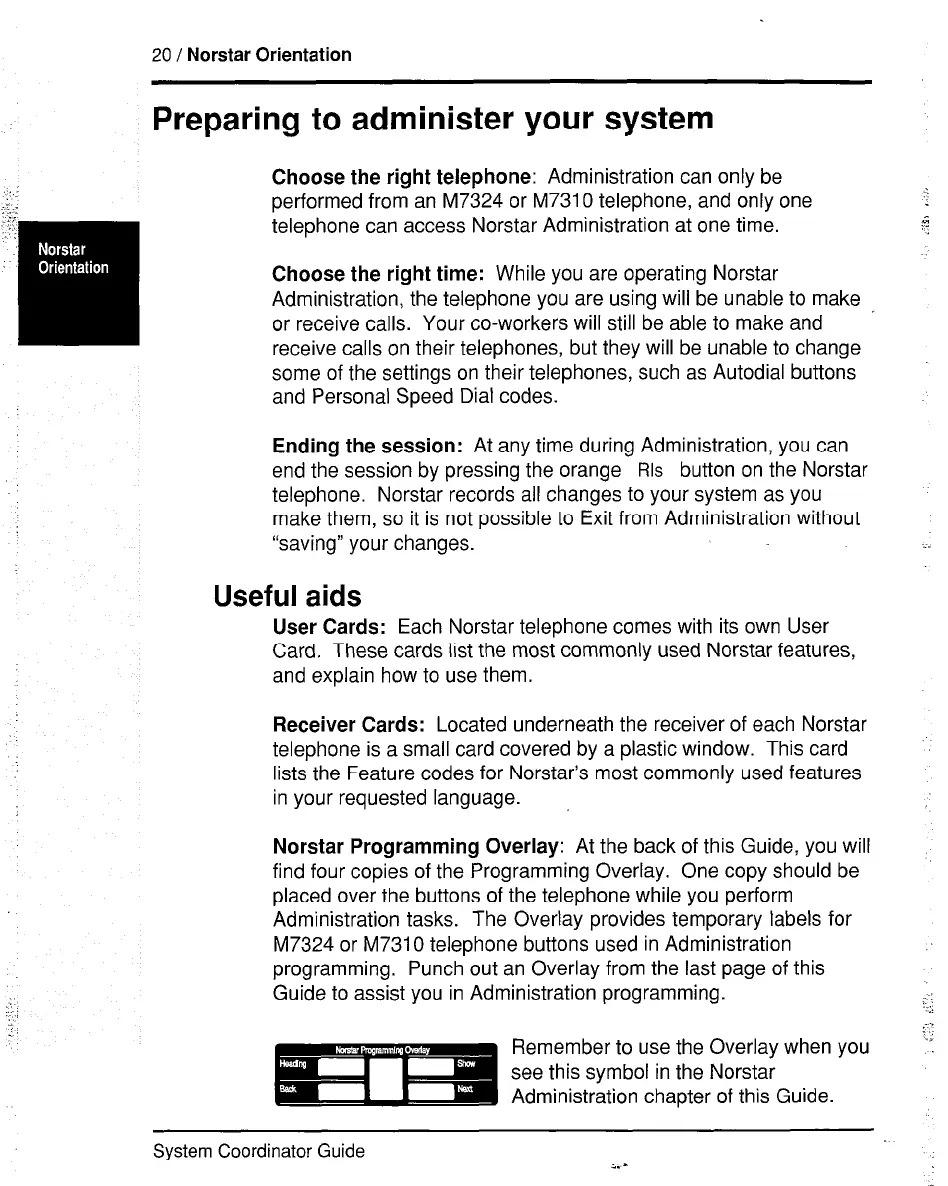 Norstar Programming Overlay: At the back of this Guide, you will
