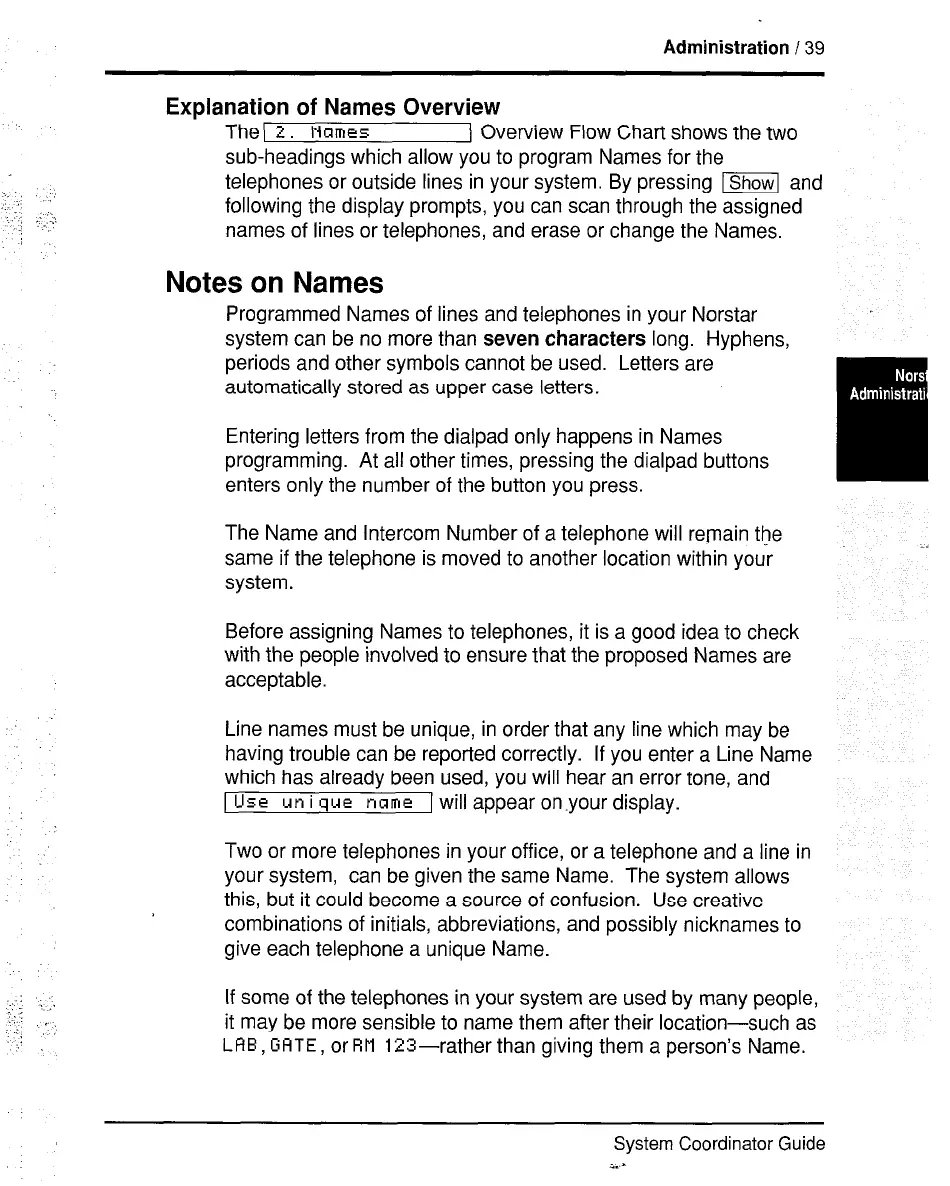 names of lines or telephones, and erase or change the Names.