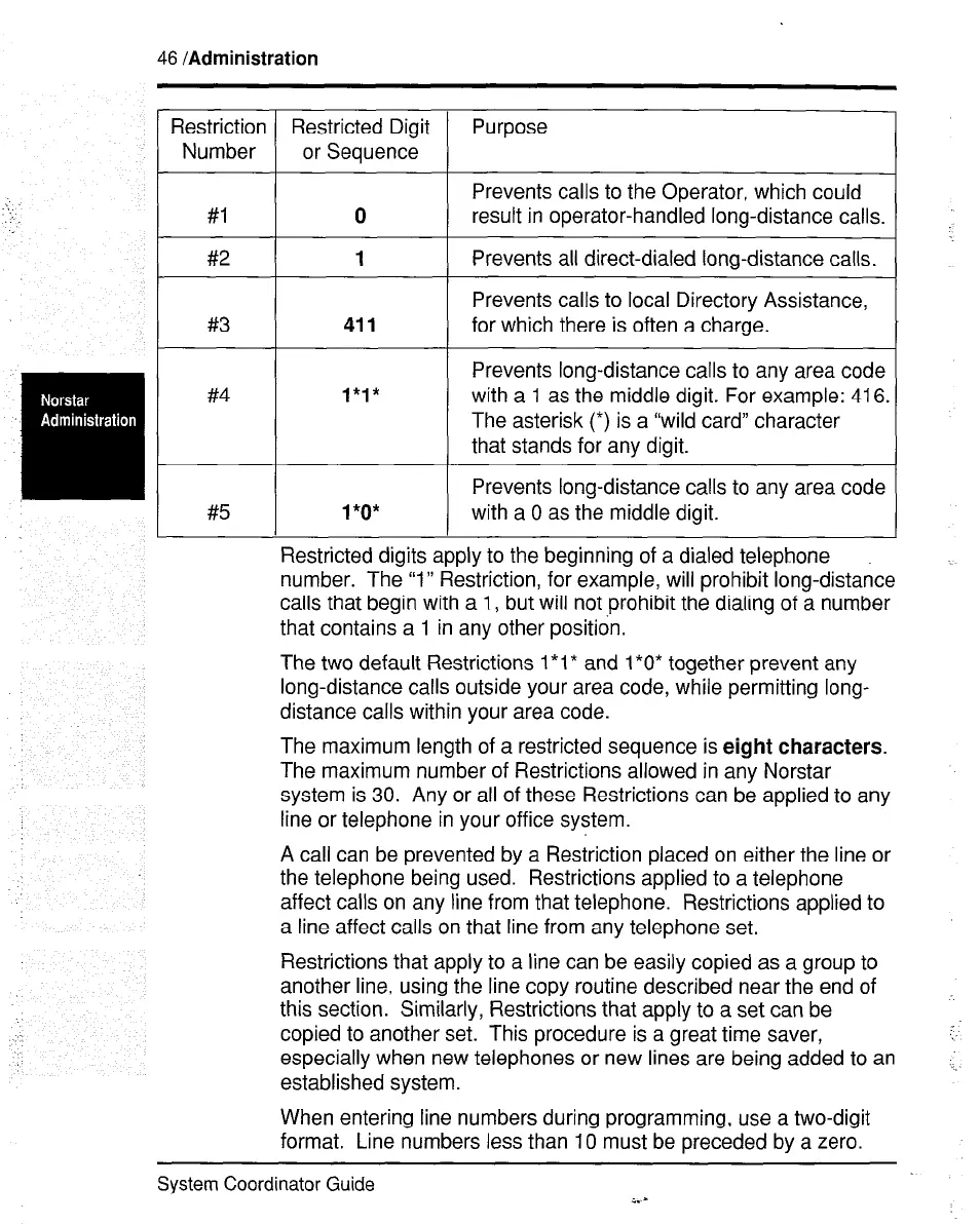 number. The “1” Restriction, for example, will prohibit long-distance
