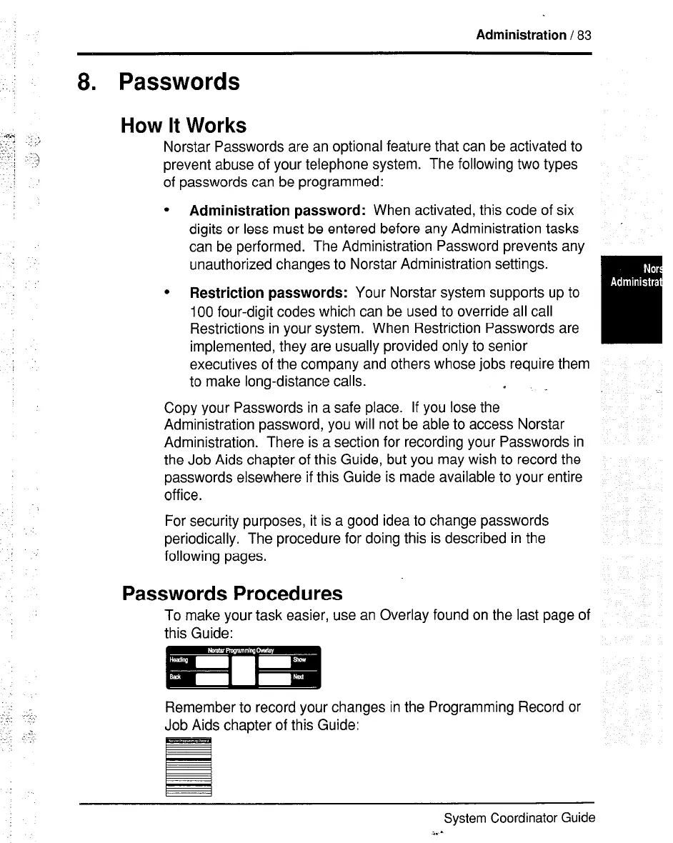 Restriction passwords: Your Norstar system supports up to