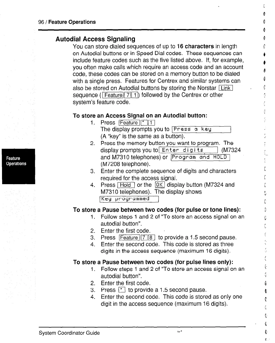 on Autodial buttons or in Speed Dial codes. These sequences can