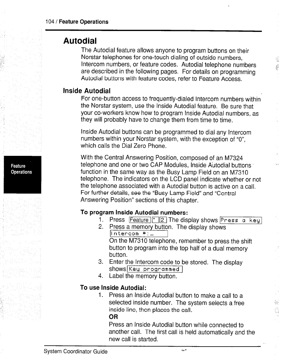 the Norstar system, use the Inside Autodial feature. Be sure that