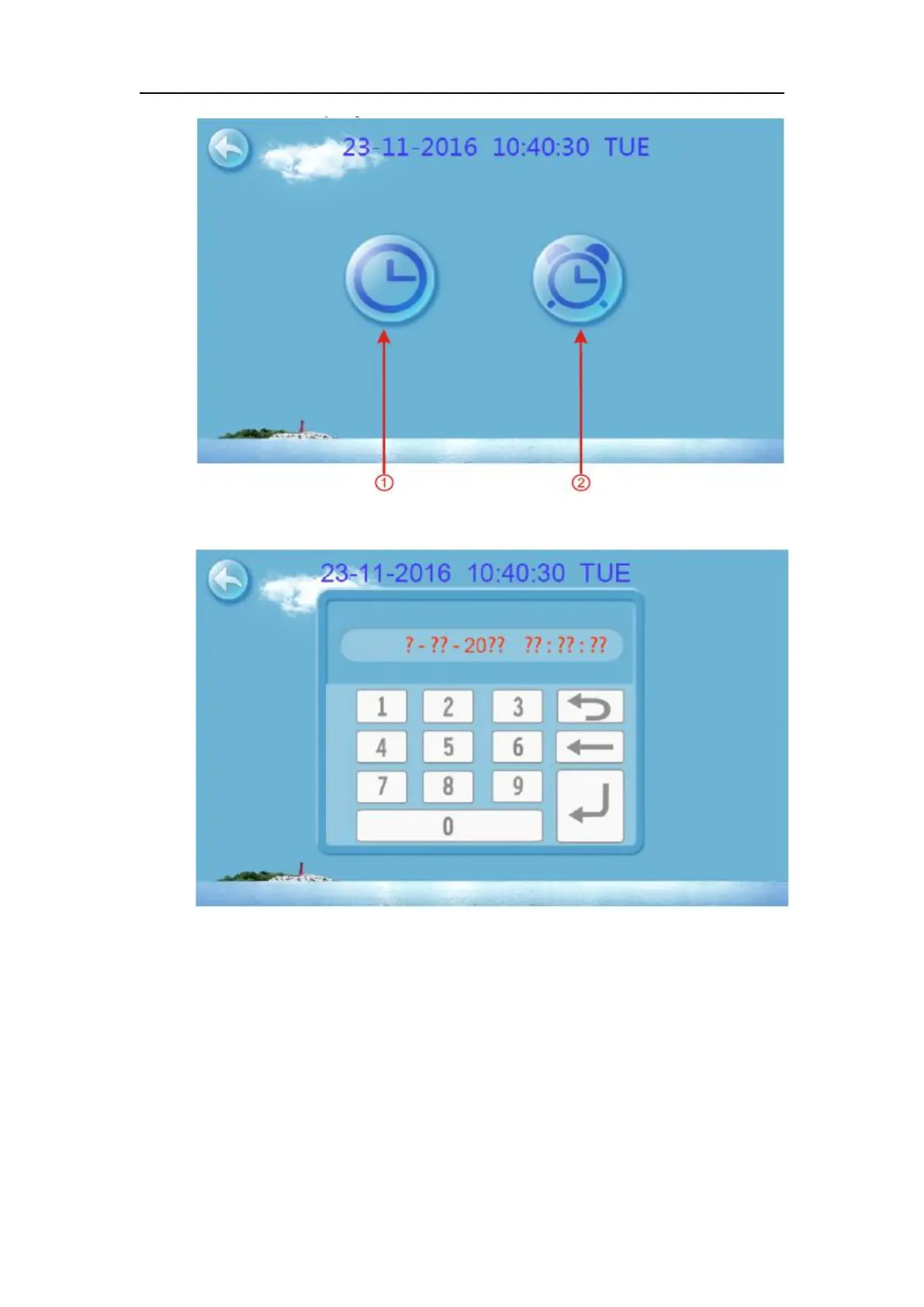 Cliquer sur la touche de réglage de la temporisation ② pour entrer dans l’interface de