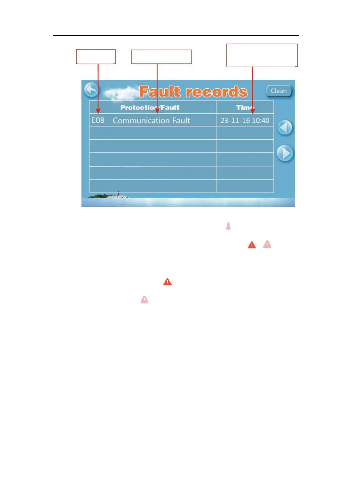de foutinterface registreert tijd, code, naam van de fout.