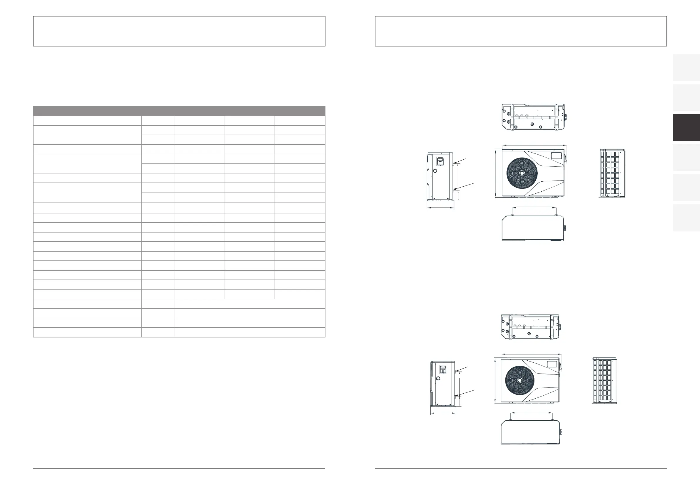 2.2 DIE AUSMASSE DER SCHWIMMBADWÄRMEPUMPENEINHEIT