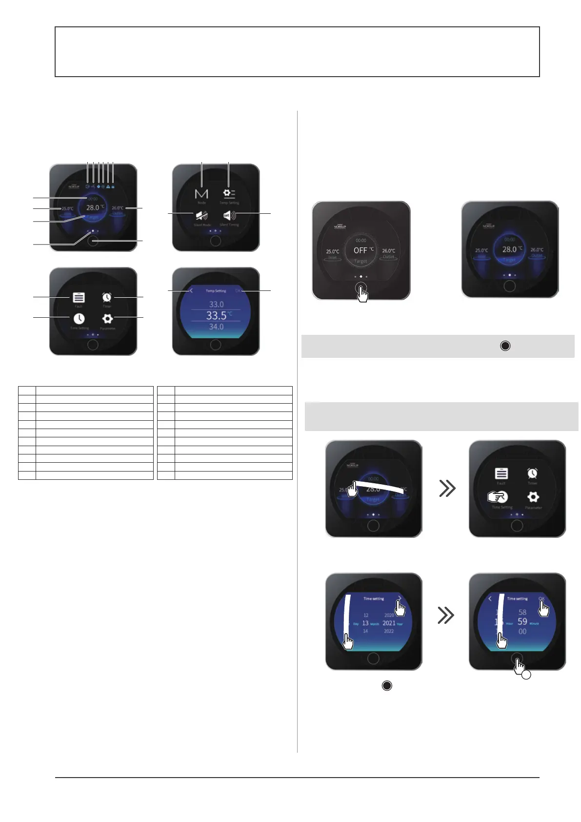Varmepumpen er udstyret med et digitalt kontrolpanel med touchscreen, der