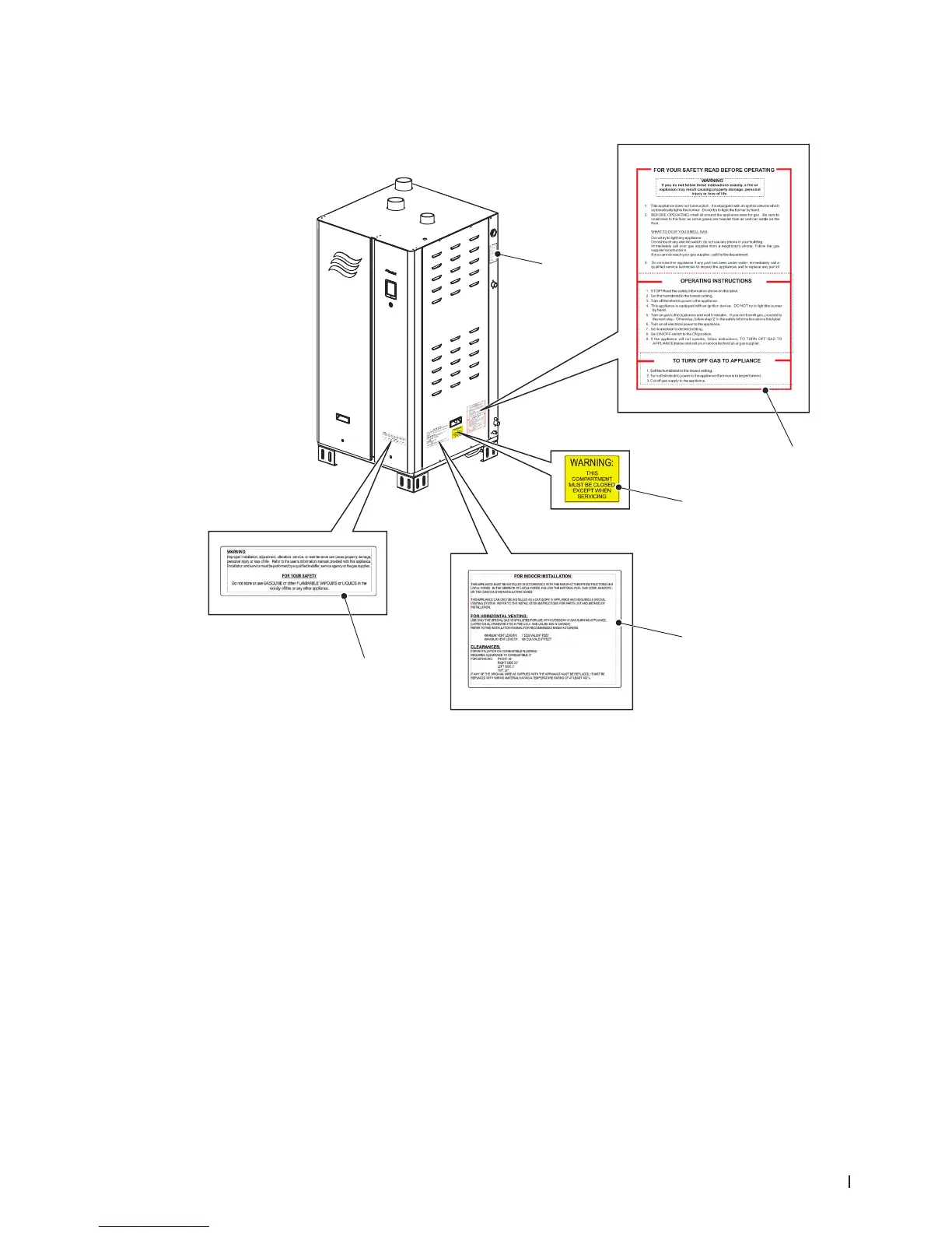 The location of the various safety labels on the Nortec GS humidier is shown in Figure 1.