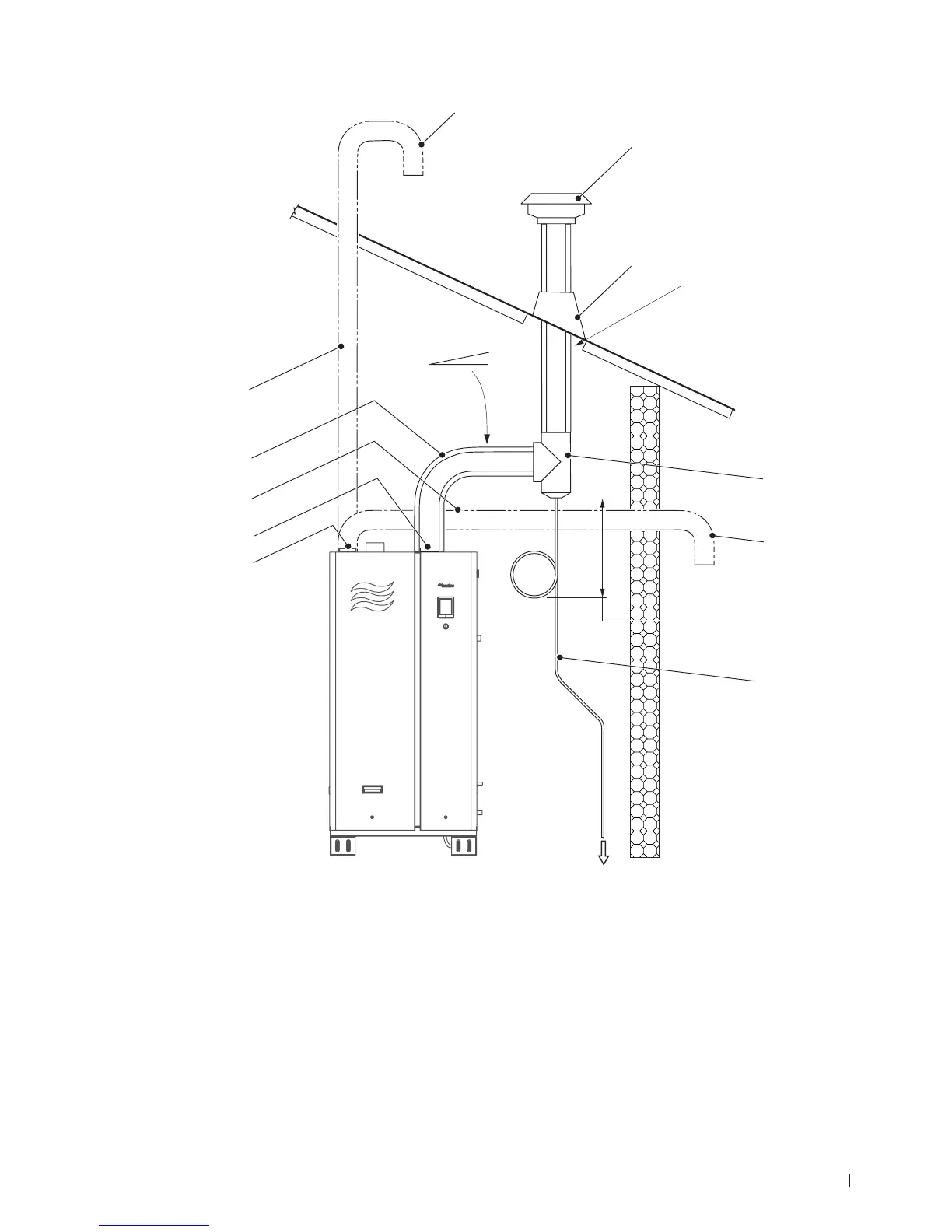 11 Vent, exhaust, BH type – plastic or stainless steel. All joints air and water-tight. Short horizontal run with slope as shown (recommended,