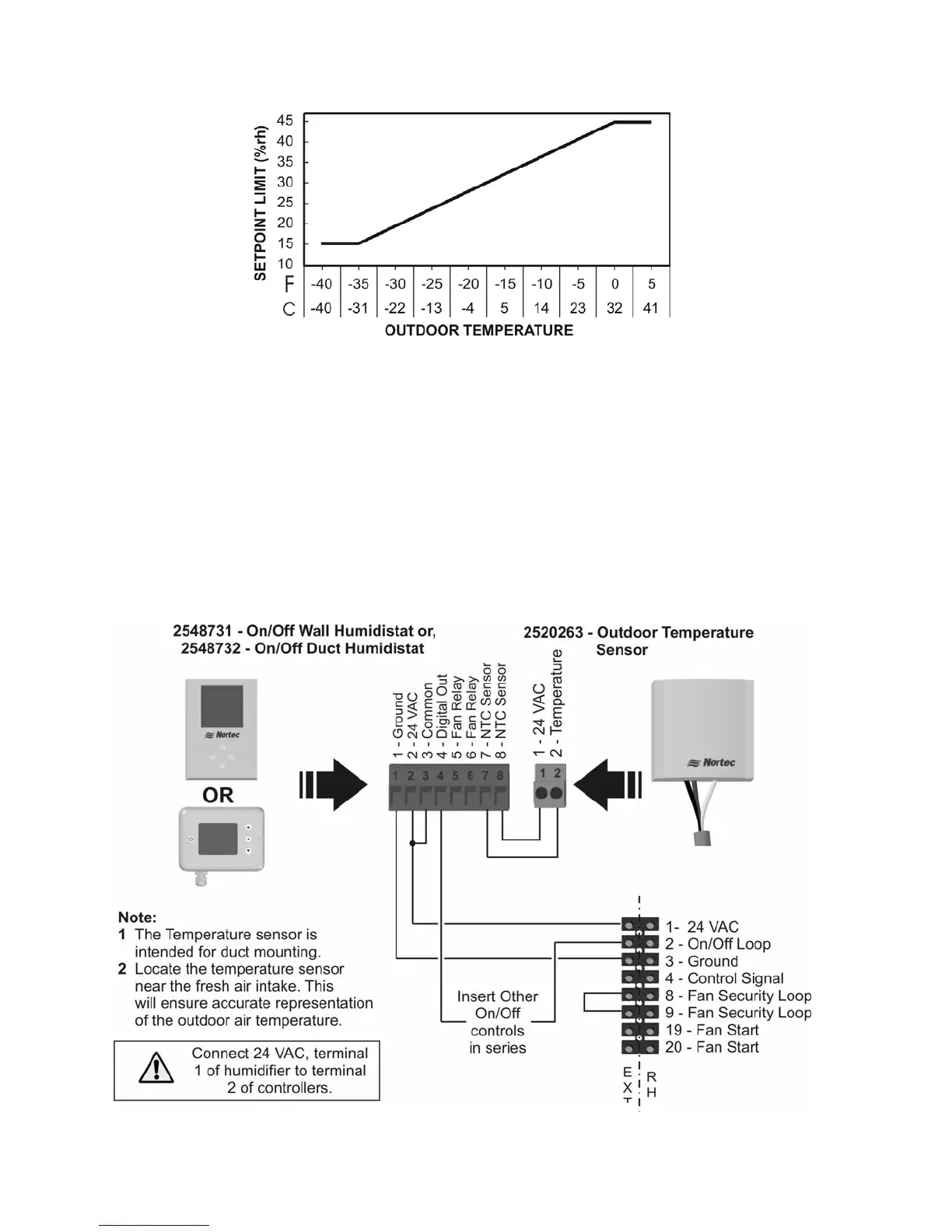 and wiring the outdoor temperature sensor to these terminals.