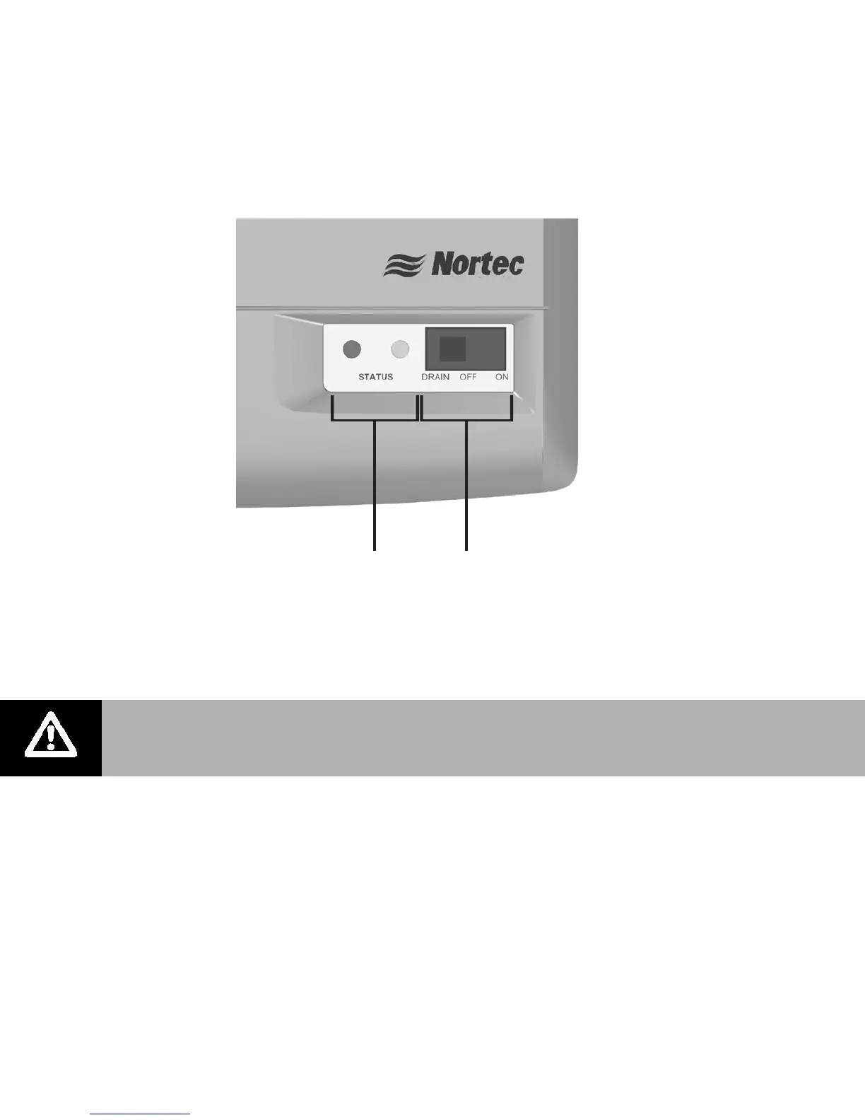 information on current humidifier status. The On/Off/Drain switch can be used to turn the