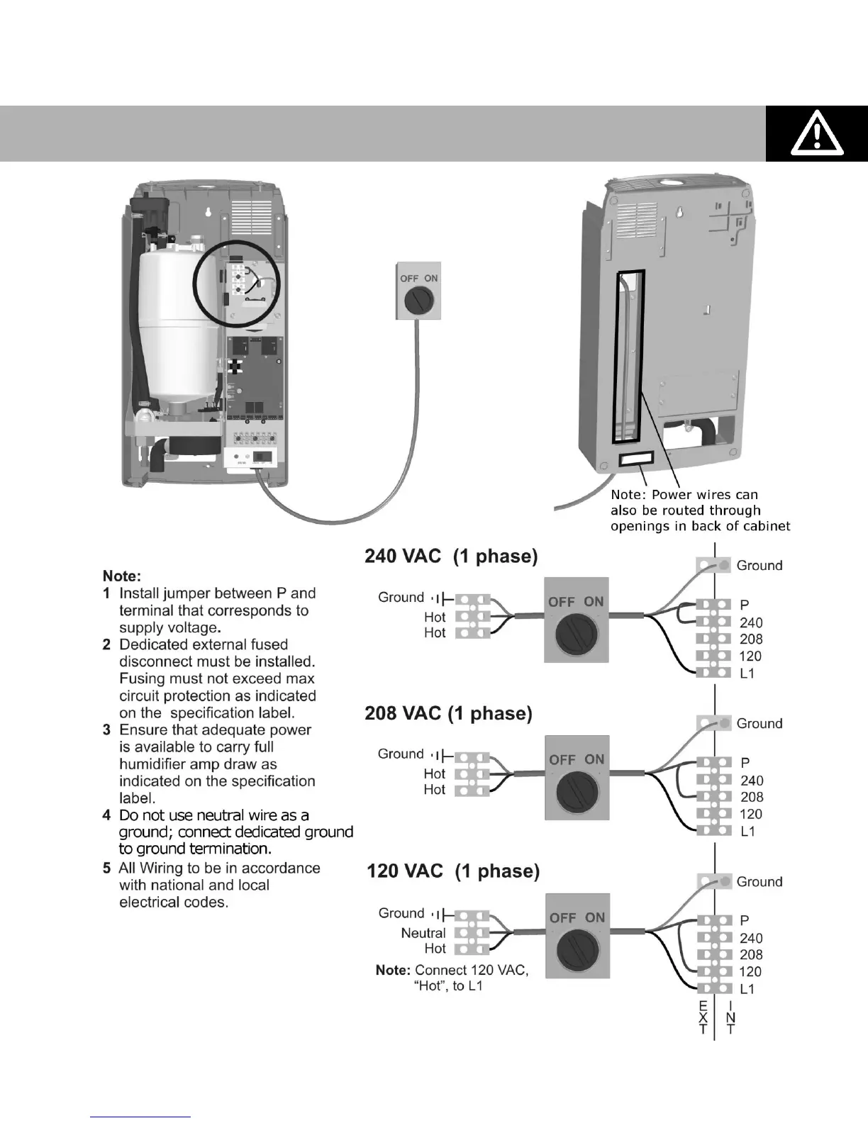 Caution: Wiring to be performed by a licensed Electrician.
