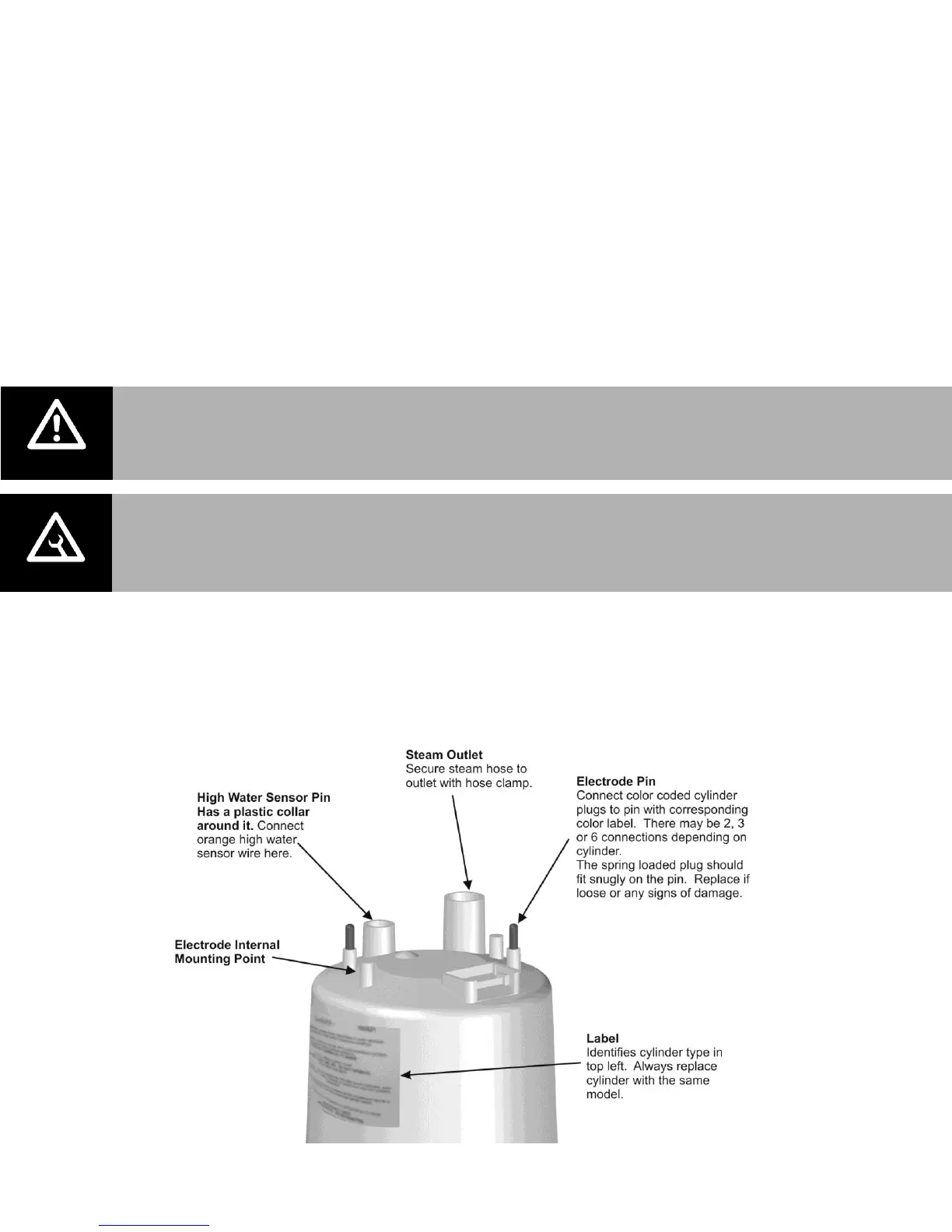 The steam cylinder is disposable and must be replaced at end of cylinder life. Cylinder life is