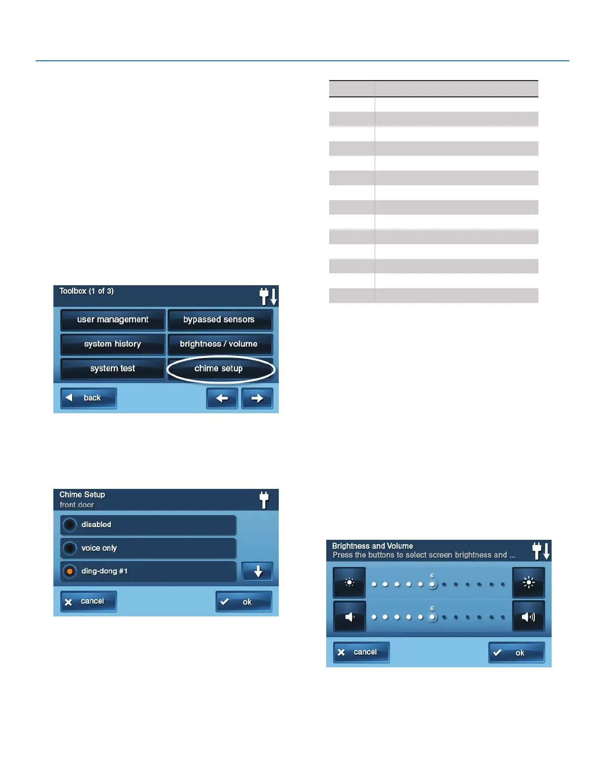 5 At the Toolbox (1 of 3) screen, tap Chime Setup. The