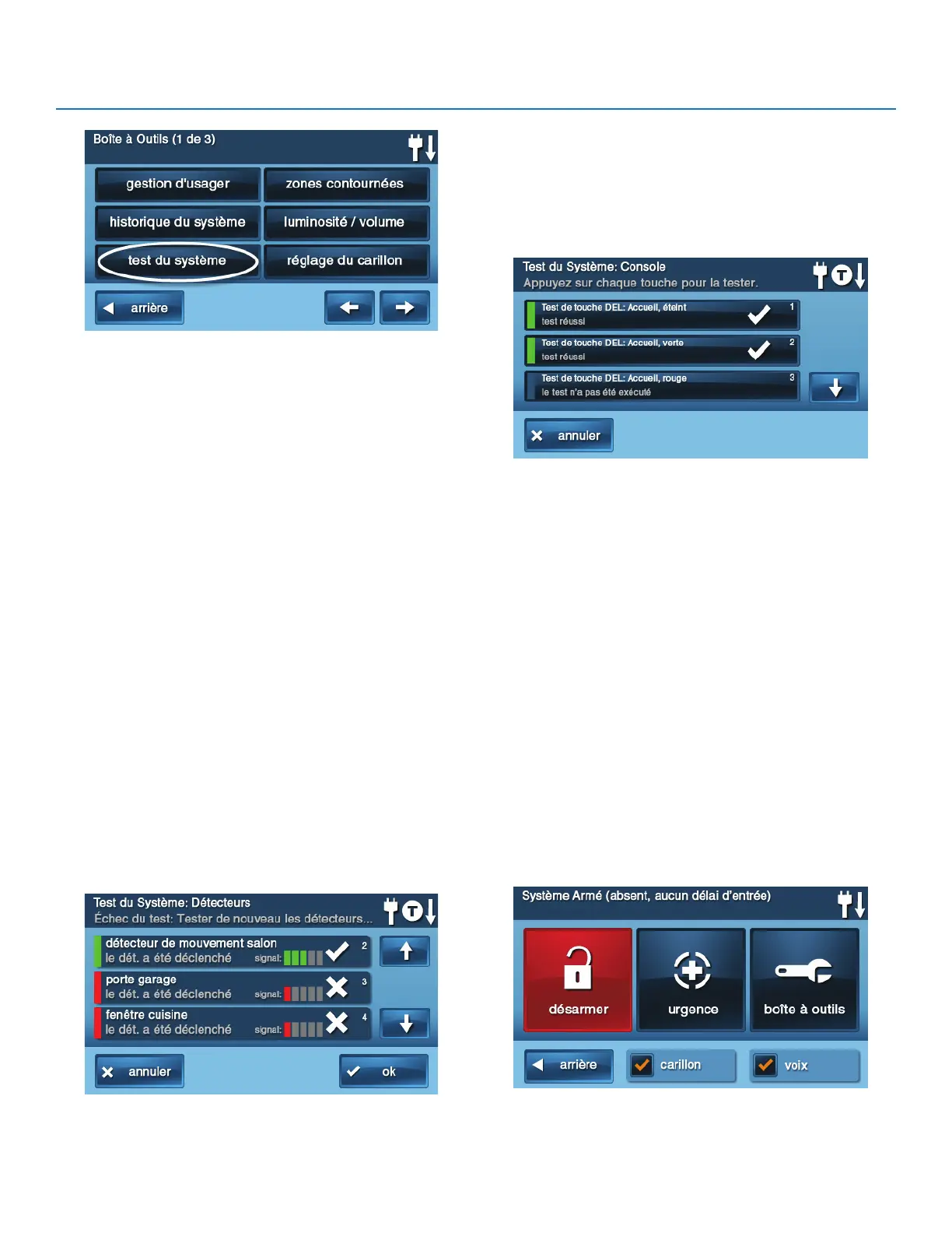Lorsque chaque détecteur est testé, le panneau de