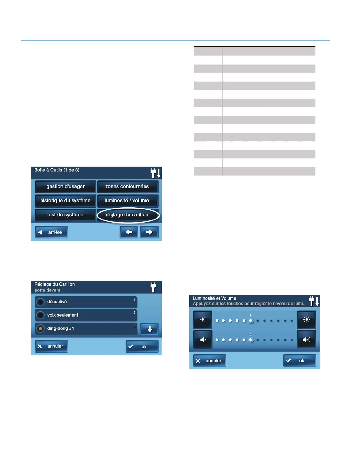 Réglage du carillon. L’écran de réglage du carillon