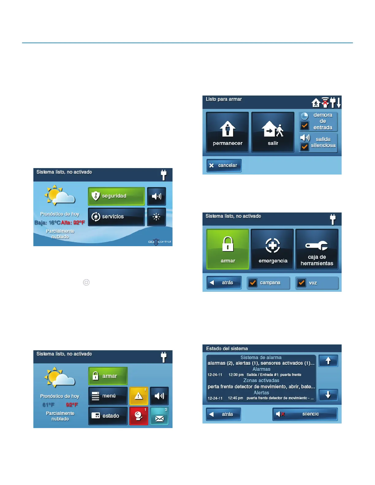 de seguridad en el modo Permanecer y Salir. También