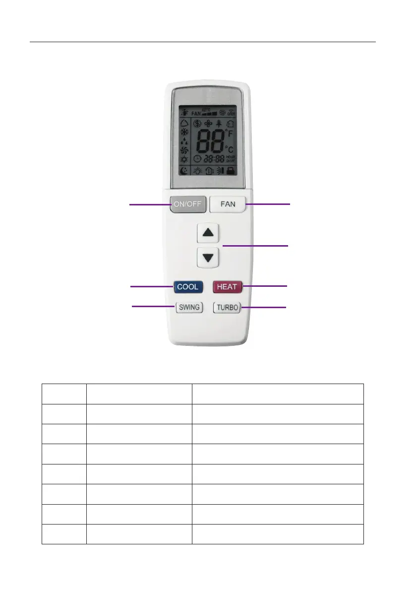 1 ON/OFF Turn on or turn off the unit