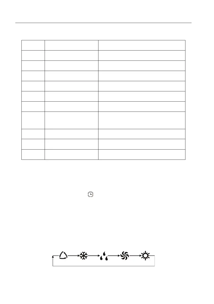 In unit on status, press MODE button to select operation mode in following