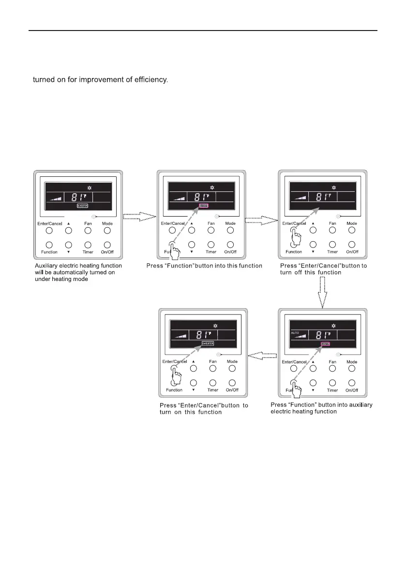Once the wired remote controller or the remote controller enters the Heating mode, this function