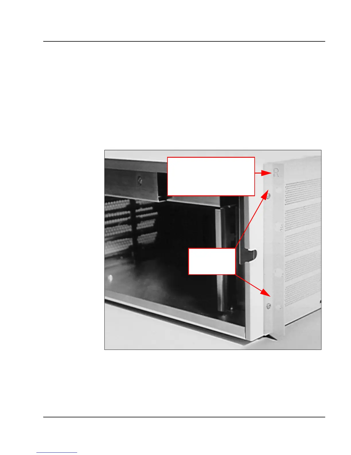 3 Attach the right ear bracket (marked with an “R”) to the holes on the right