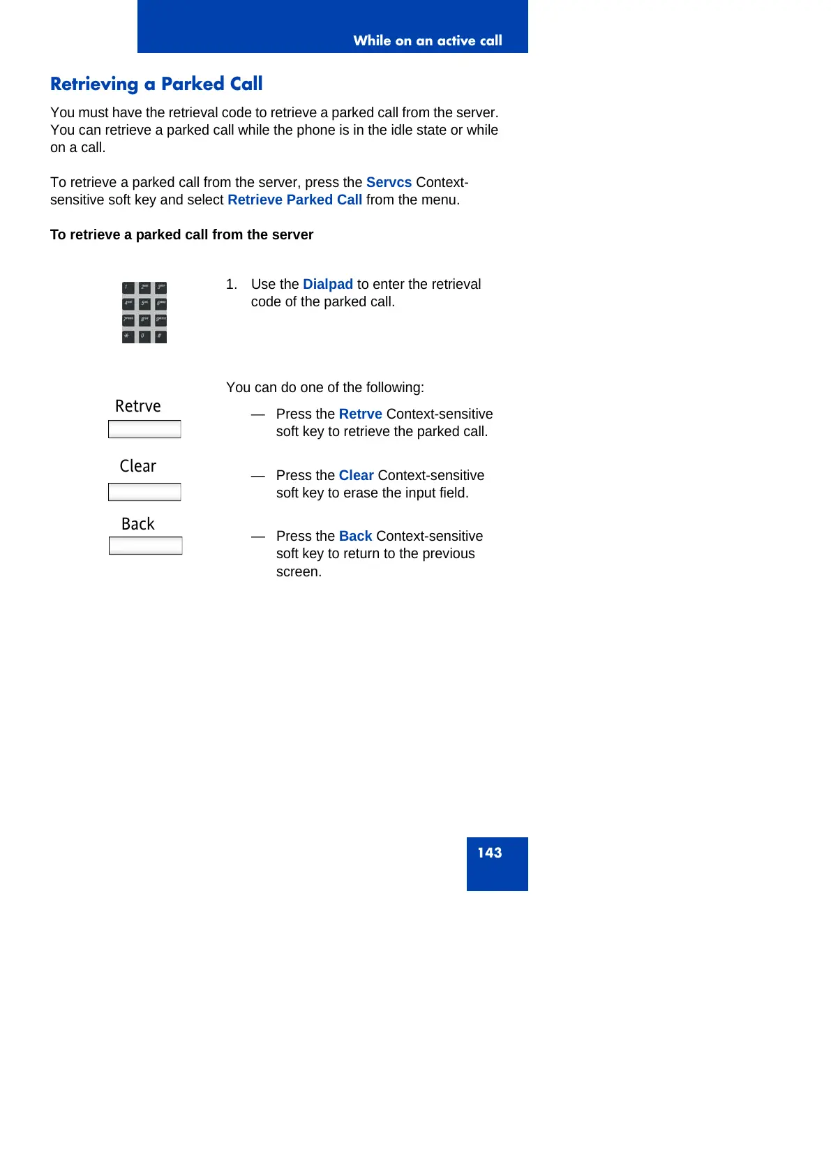 sensitive soft key and select Retrieve Parked Call from the menu.