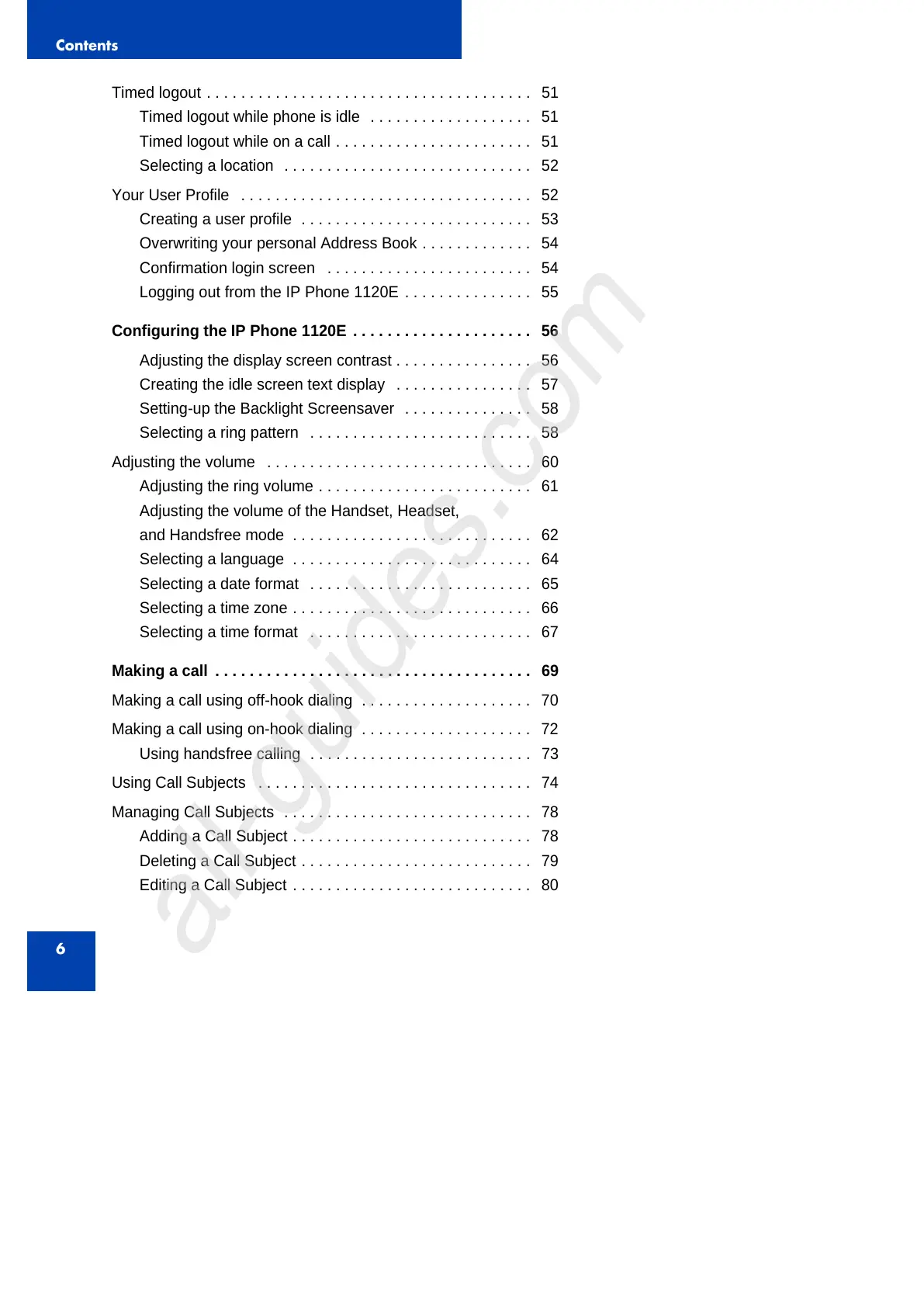 Logging out from the IP Phone 1120E . . . . . . . . . . . . . . . 55