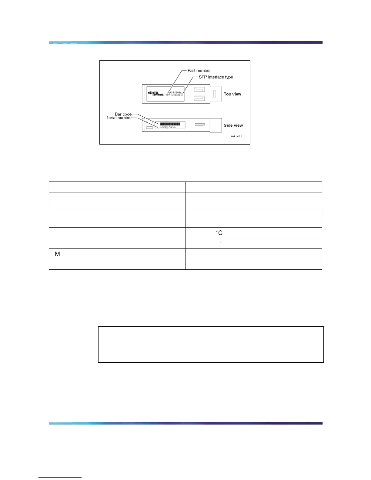 The following table describes general SFP specifications.