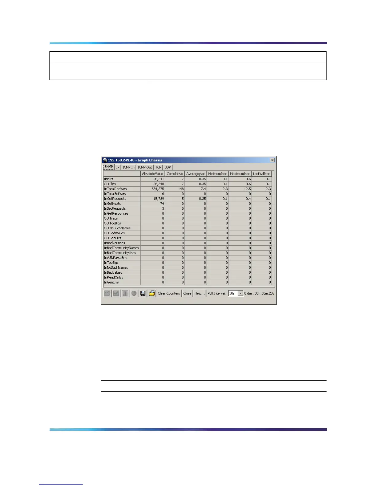 The SNMP tab provides read-only statistical information about SNMP traffic.