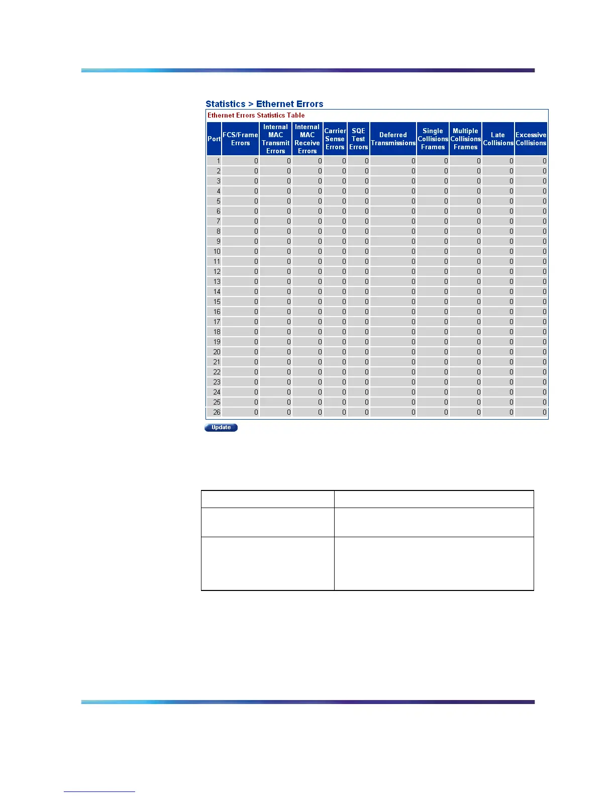 Ethernet Errors screen