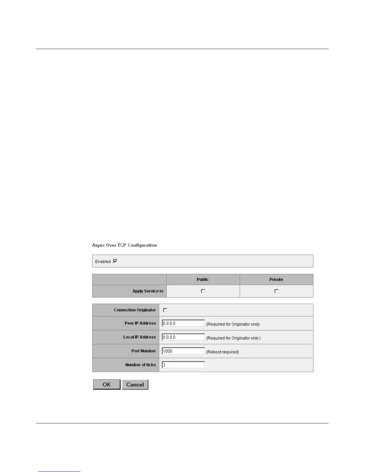 2 Check to enable asynchronous over TCP/IP communications. The default is