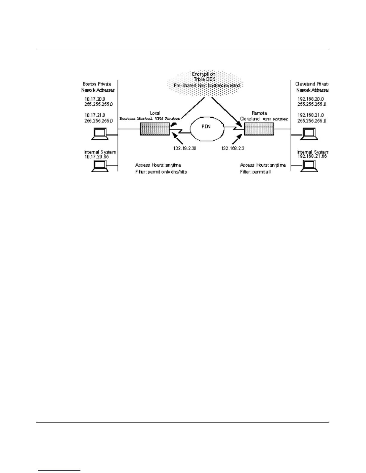 networks. In the sample configuration, the local Nortel VPN Router’s internal