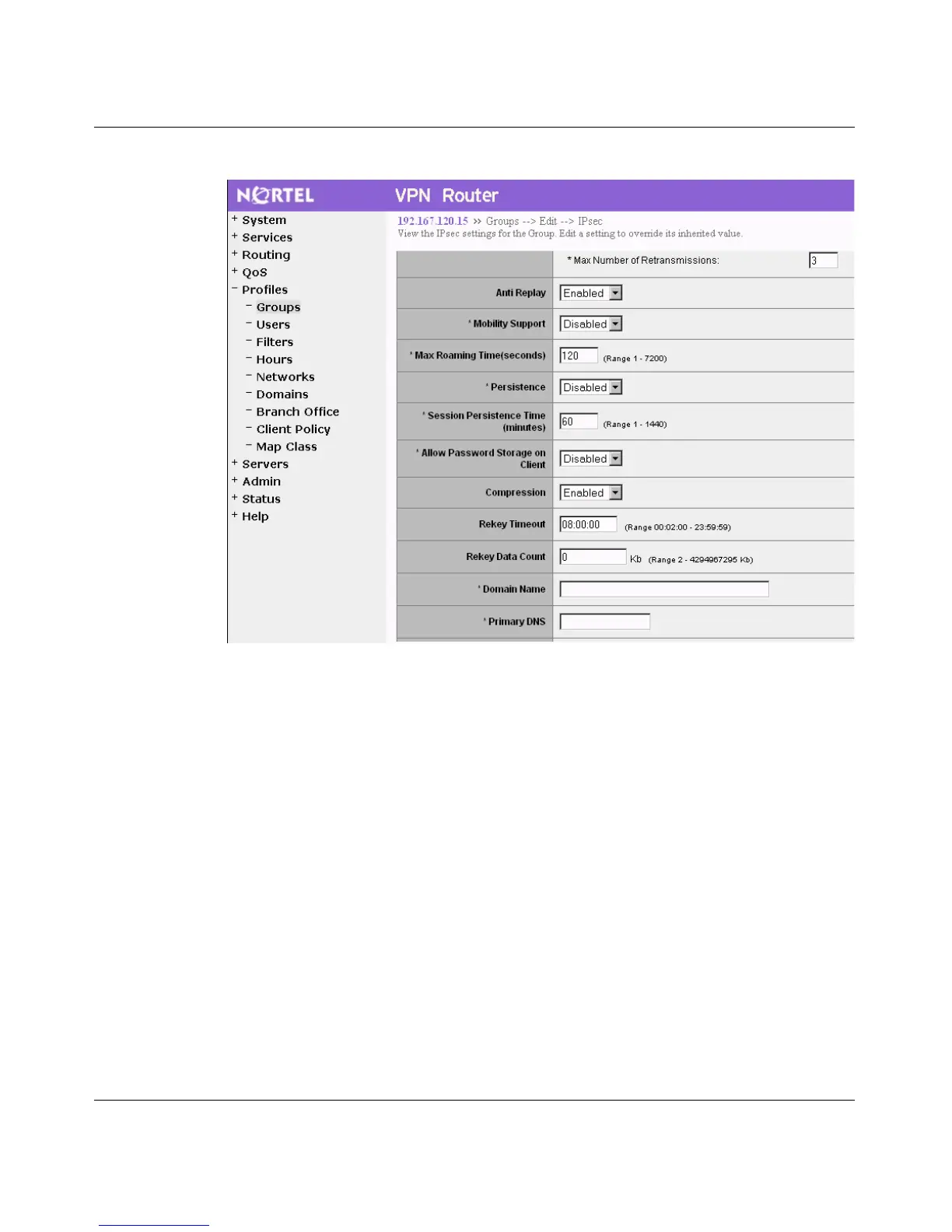 Nortel VPN Router Configuration — Basic Features