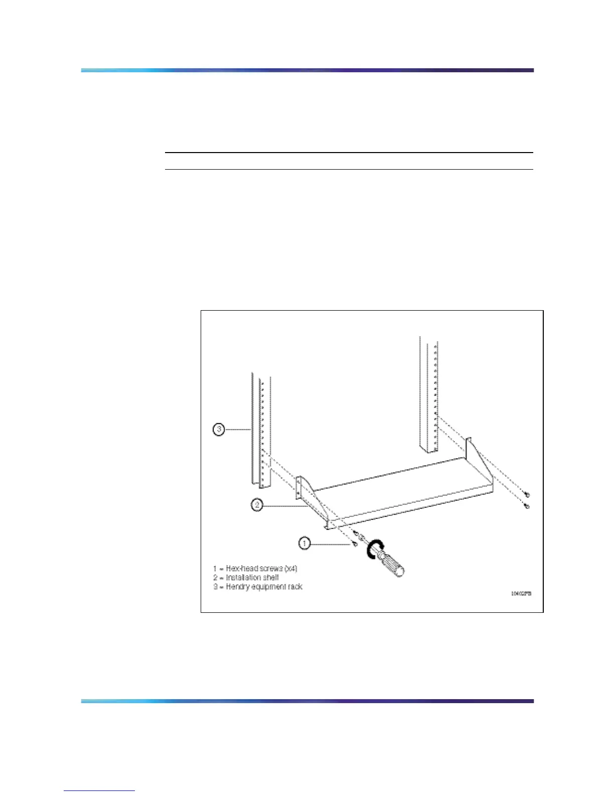 Holding the installation shelf in position, align the shelf’s mounting