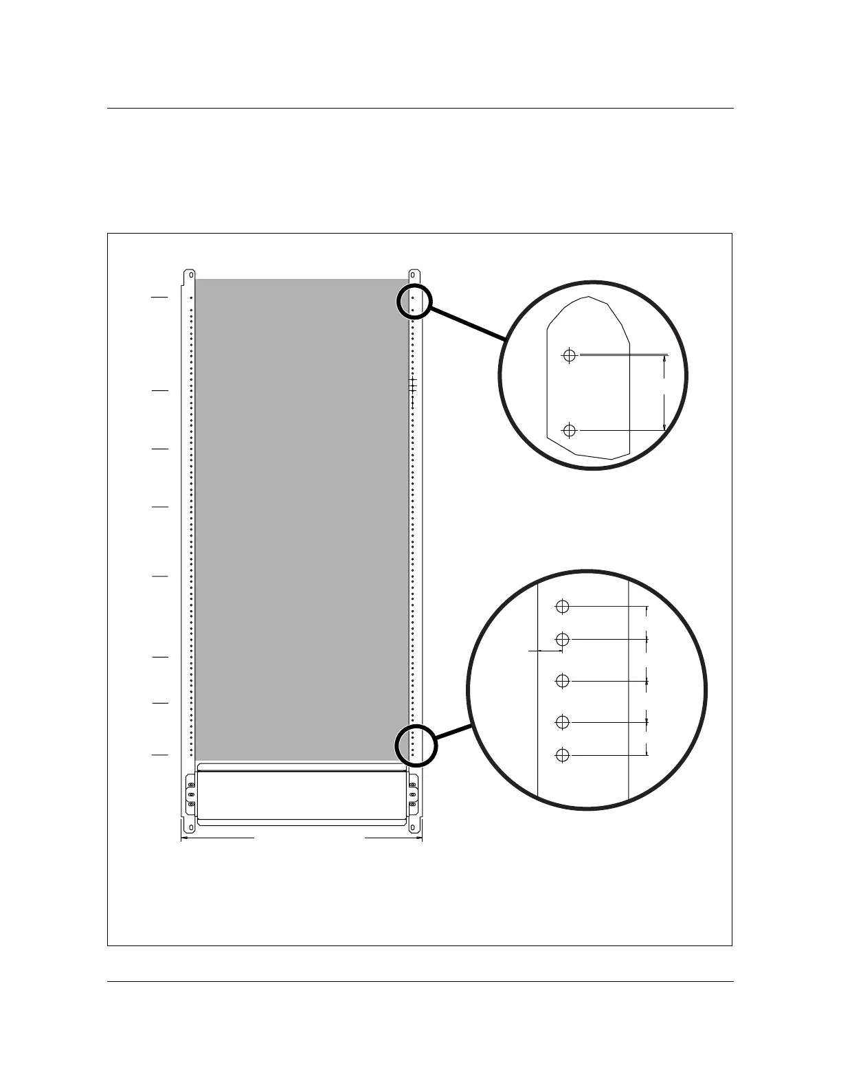 For a front view of frame/bay A, B, C, D, E and F, the equipment frame/bay