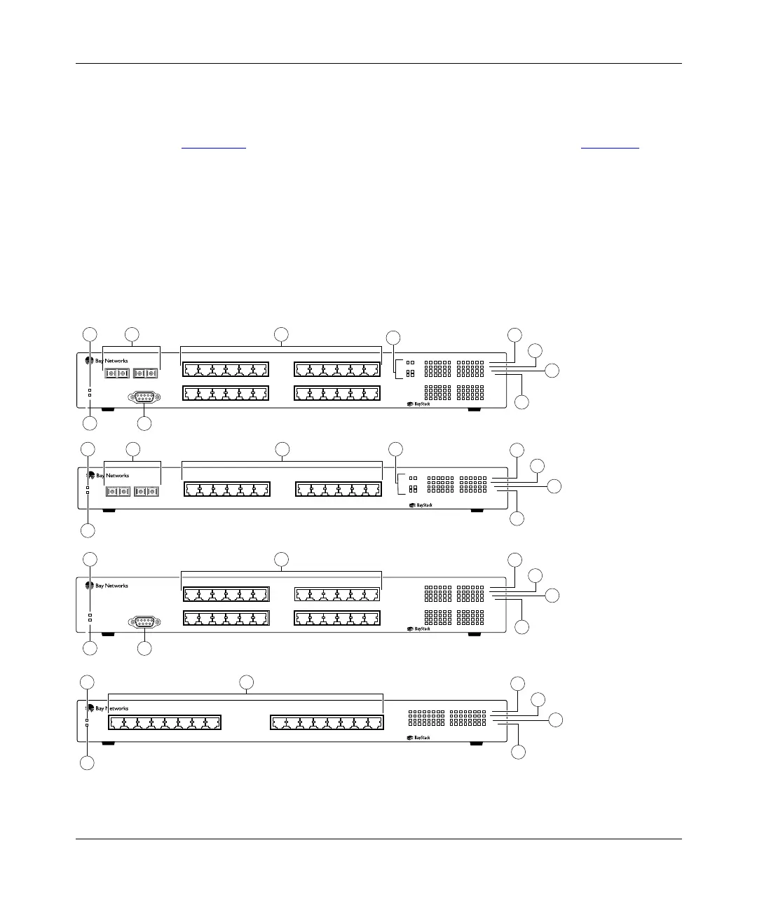 This section describes the front-panel components of the BayStack 350 switches