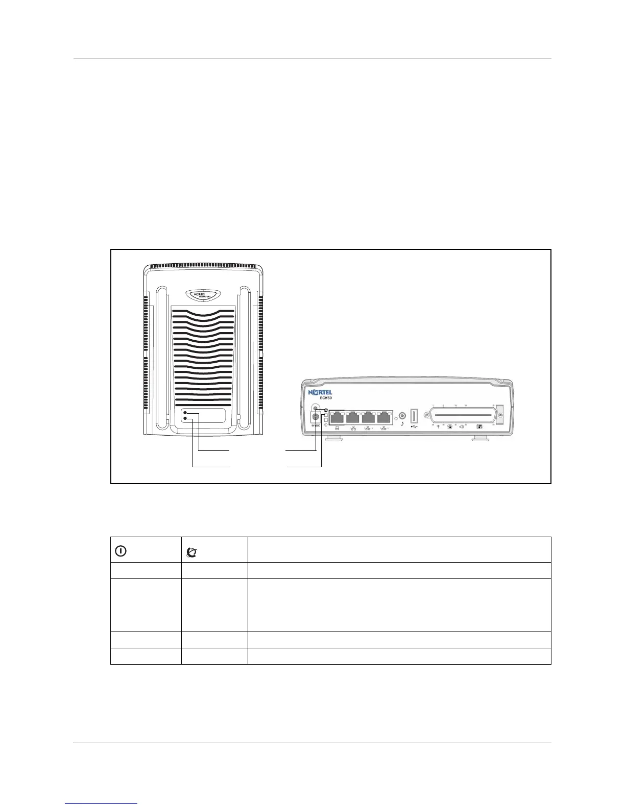 Solid red A Major or Critical alarm is activated on the BCM50.