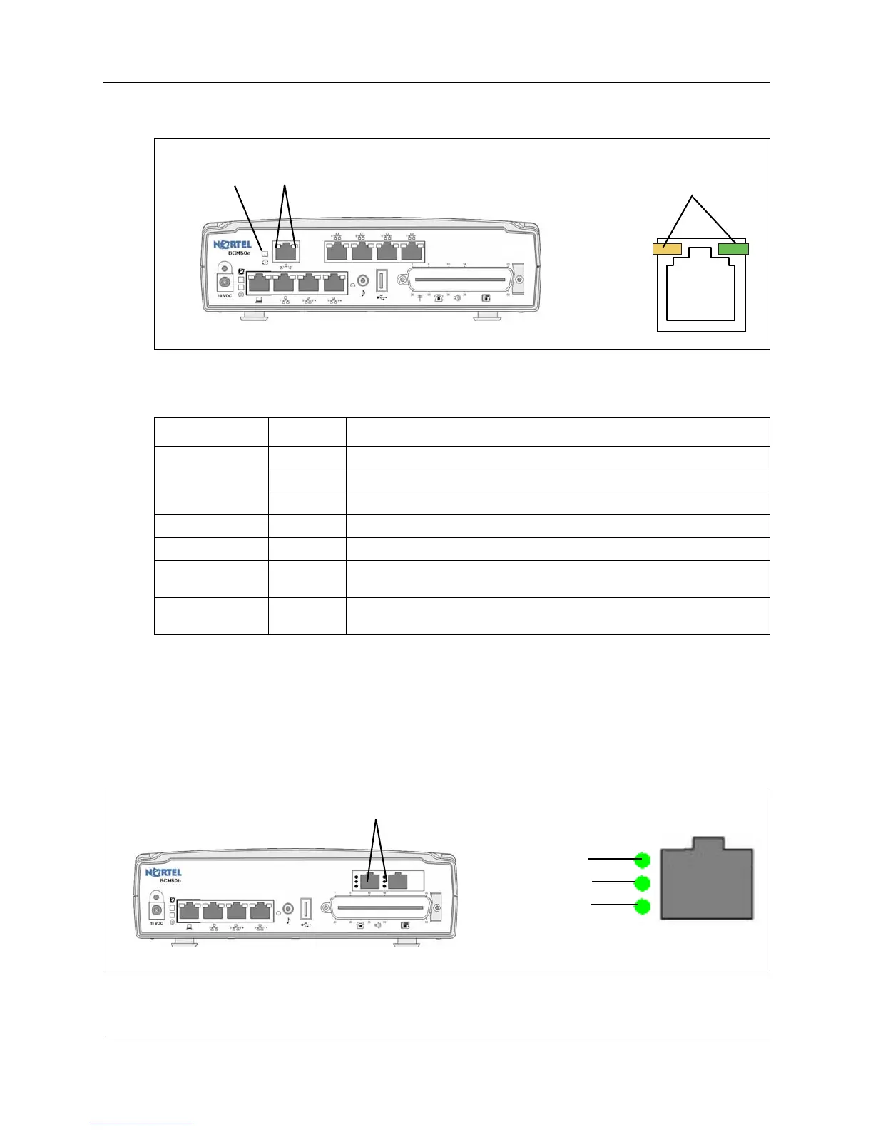 port status. The figure Ethernet router LEDs on the BCM50e and BCM50be main units (BCM50e