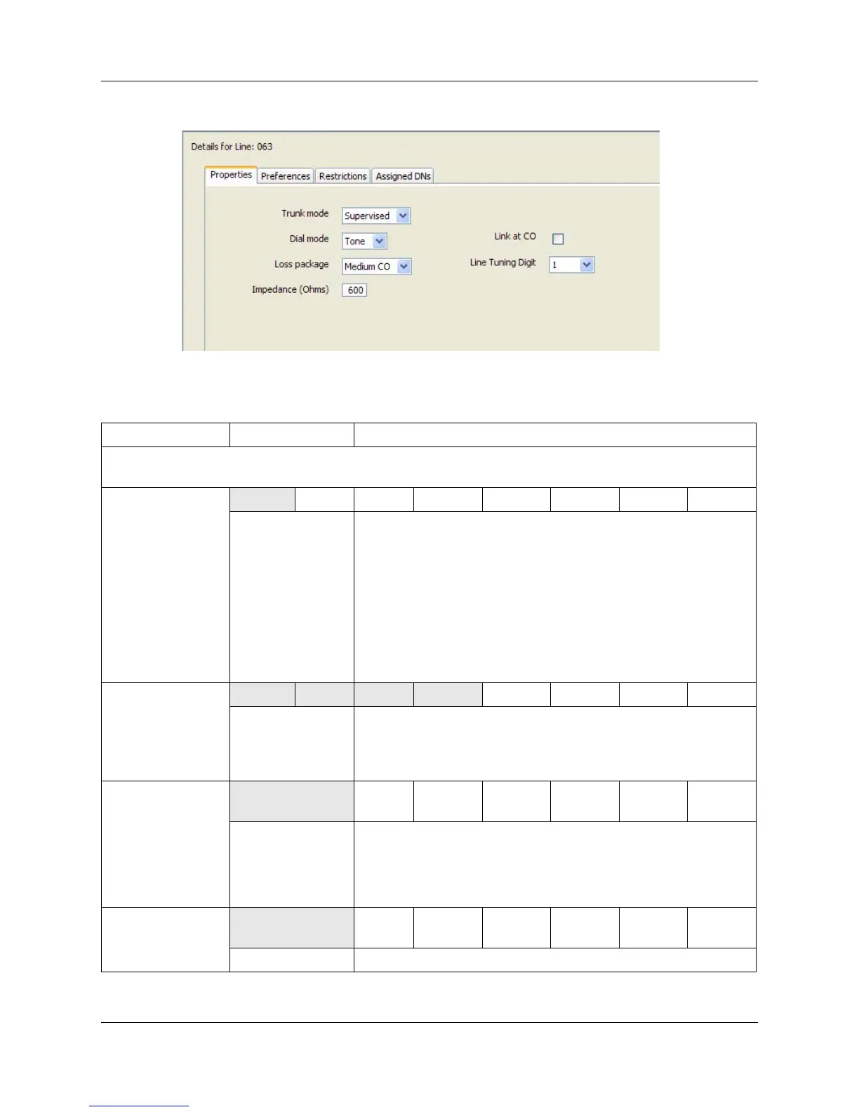 Table 13 Properties line settings (Sheet 1 of 2)