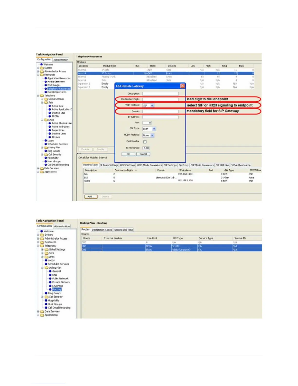 8 Select Configuration > Telephony > Dialing Plan > Routing and select the Destination