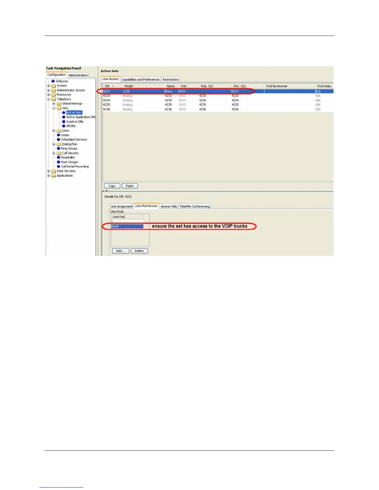 10 Highlight the appropriate set and select the Line Pool Access tab. Verify that the set has access