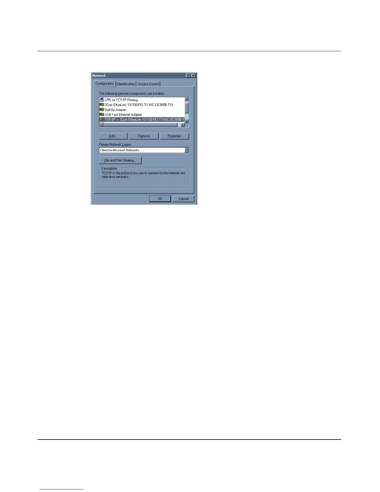 d Select TCP/IP from the list of network protocols and click OK.