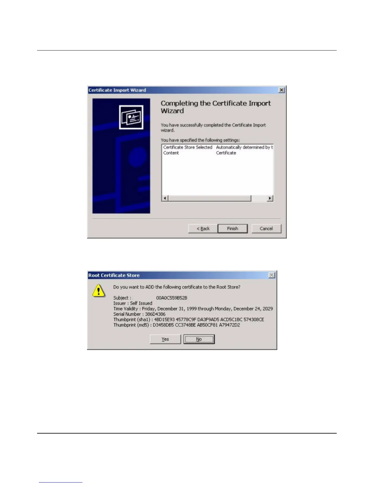 Nortel BCM50a - Figure 118 Certificate Import Wizard 3; Figure 119 Root Certificate Store