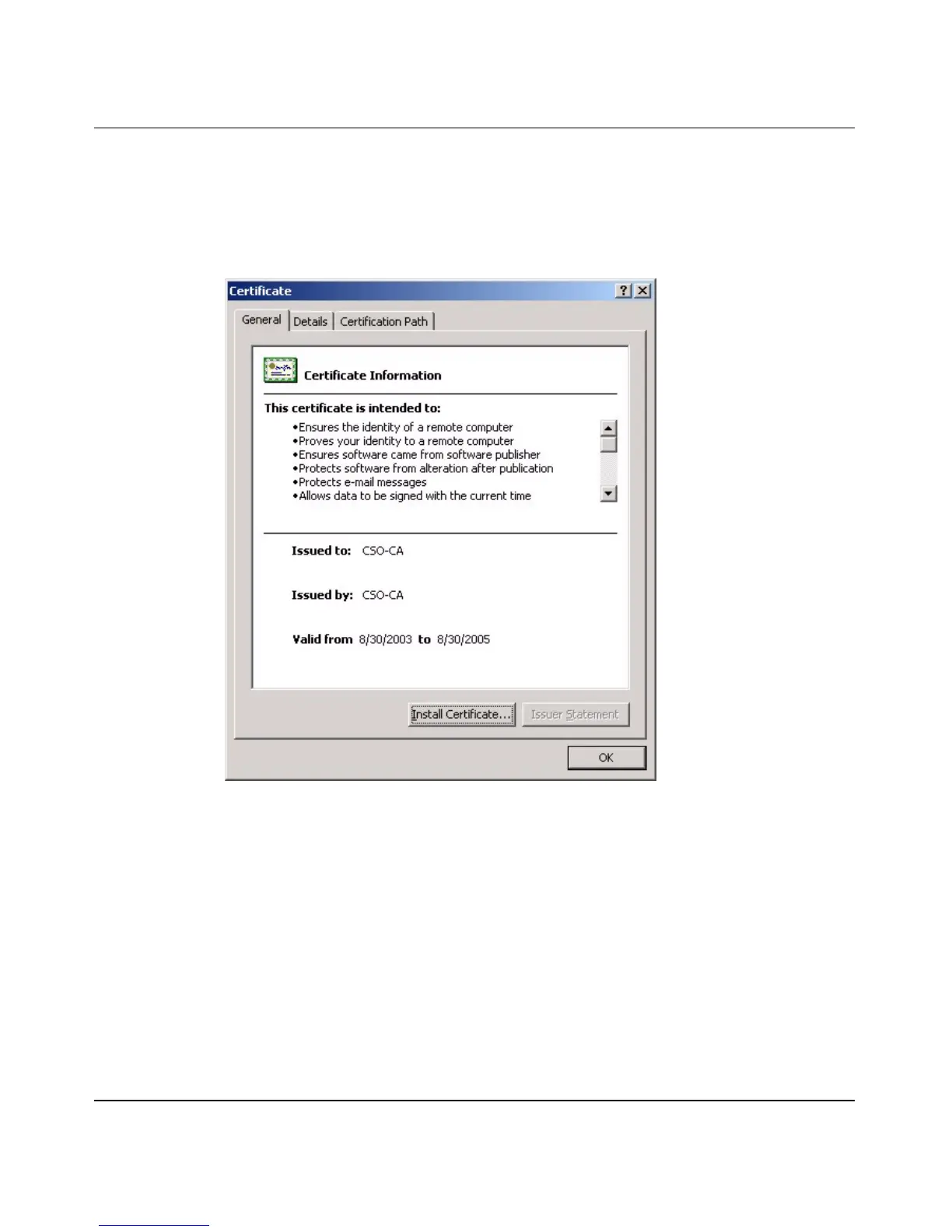1 Double click the CA’s trusted certificate to produce a screen similar to the one