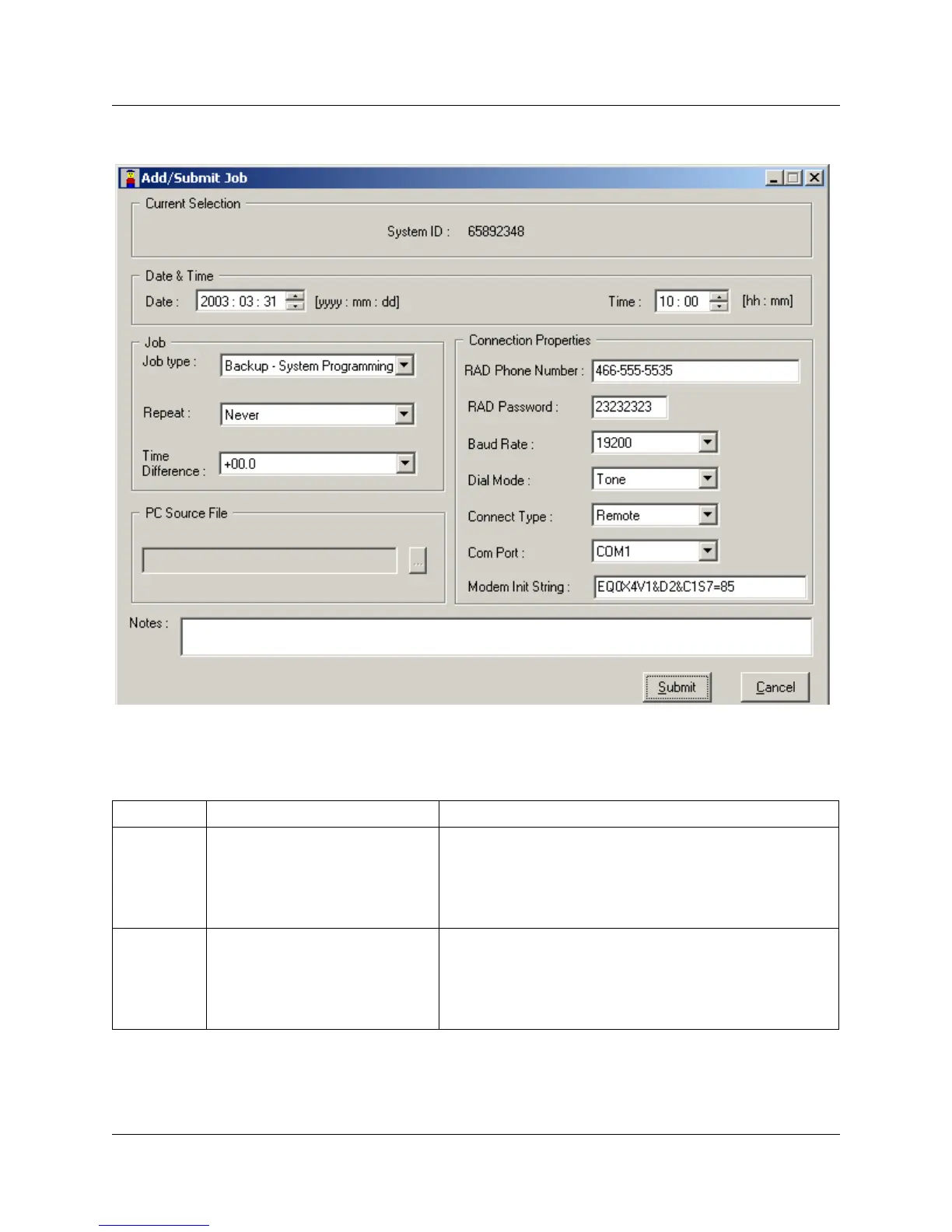Table 10 Add/Submit job fields