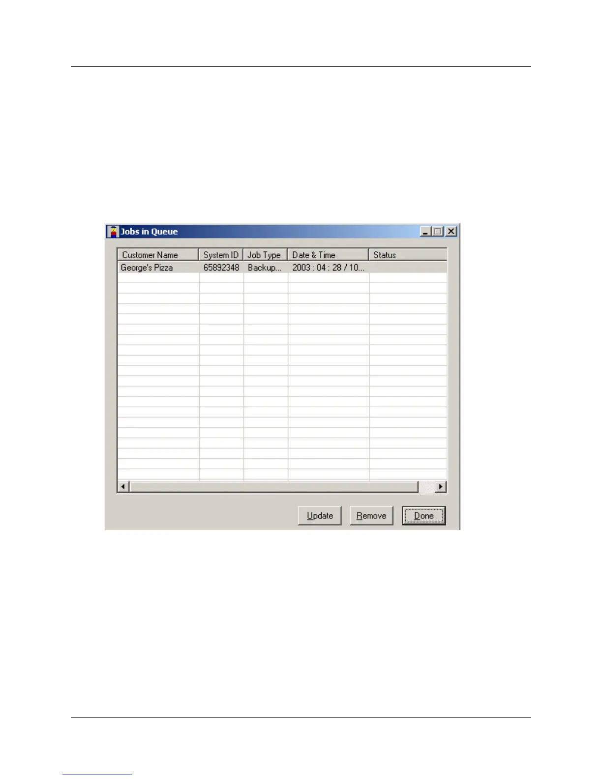 the Date & Time the job is scheduled to occur, and the current Status of the job.