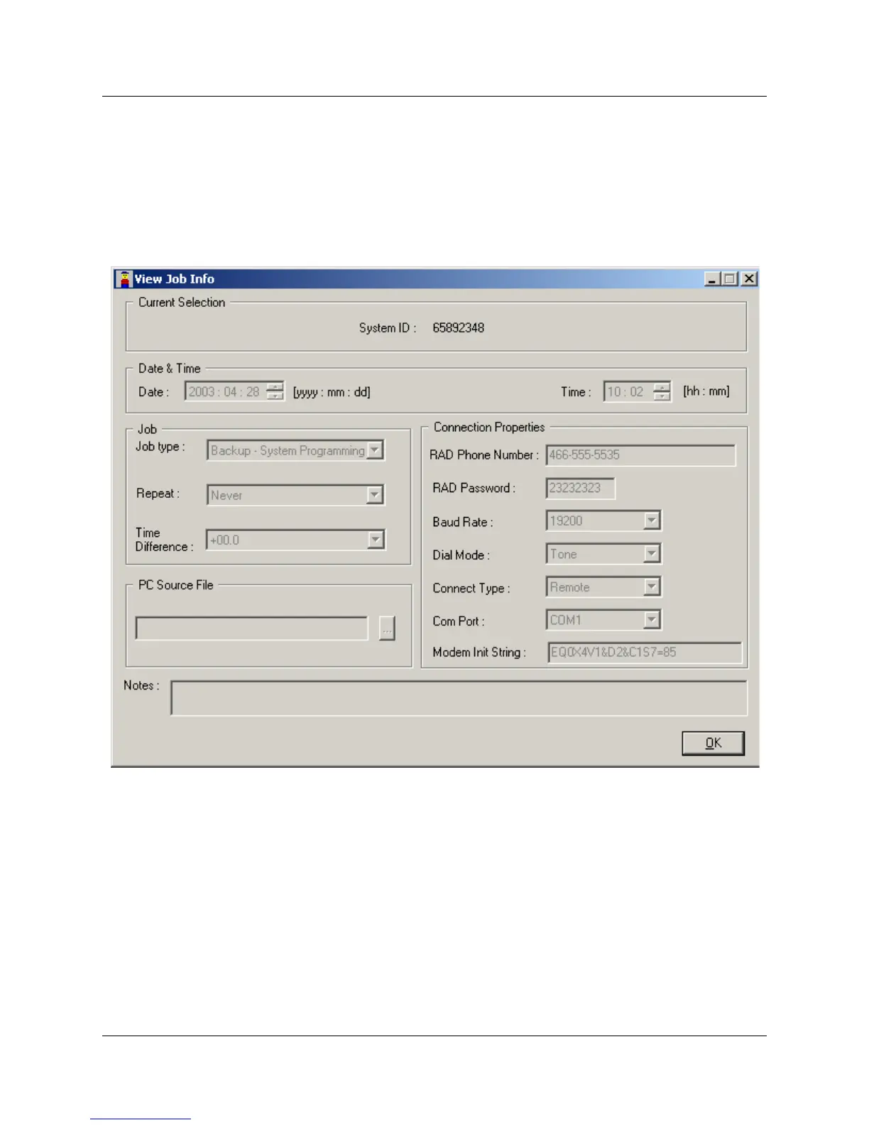 the fields in View Job Info dialog will be filled with values read from JobQueue database. All the